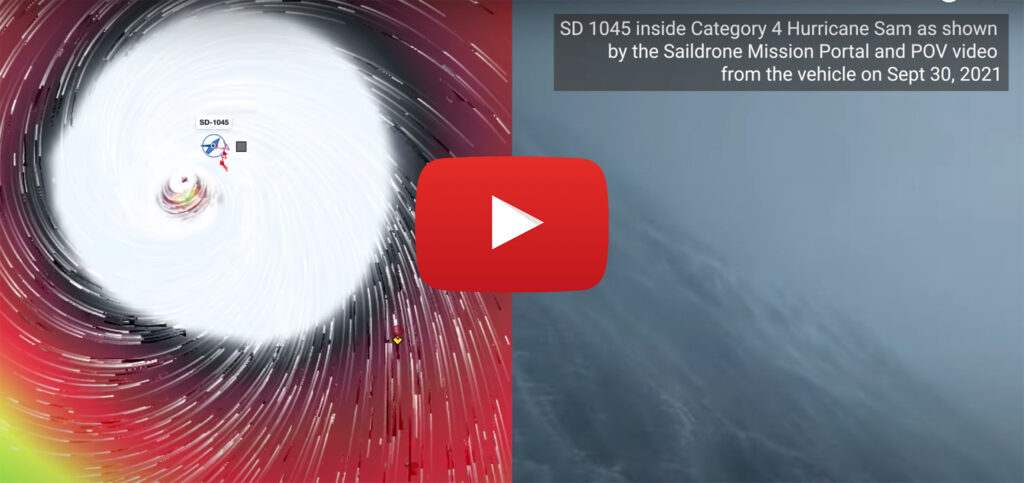 NOAA and Saildrone Inc. have teamed up to pilot five new saildrones in the Atlantic to gather data that will improve the understanding of hurricanes. Yesterday SD1045, one of the sail-powered data collection bots, got a look at Hurricane Sam, a category 4 hurricane currently off the US east coast. While weathering 50ft waves and winds of over 120 mph, the drone took some remarkable video of the storm.