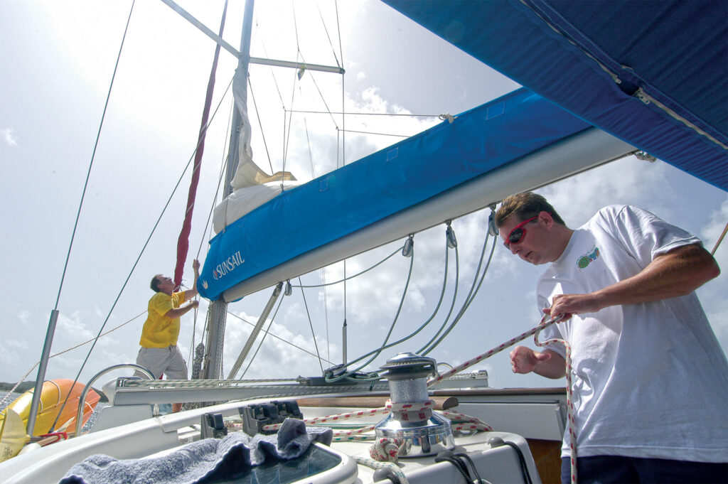 It’s the same deal with reefing. It’s faster and easier doing it all at the mast, plus you have a clear view of the sail the entire time. With cockpit-led reef lines, by comparison, you are often ducking in and out from under the dodger to check on your progress. Because you are usually working more slowly, lines are also more likely to get tangled, which may—gasp!—require you to leave the cockpit to untangle them.