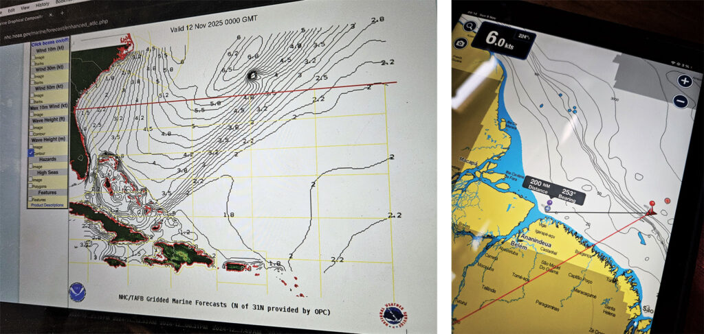 It’s great to have an abundance of weather information when selecting an exact departure date and when navigating along the miles of a passage. A sailor can gain important confidence when weather models align and when professional meteorologists confirm a passage plan. At the same time, an essential part of the captain’s job is to consider all available information and avoid fixating on any single source. The lived experience of being onboard is one important data point that the boat crew has and the weather router lacks. It would be folly for a captain to relinquish control over a course steered to someone or something that isn’t onboard.
