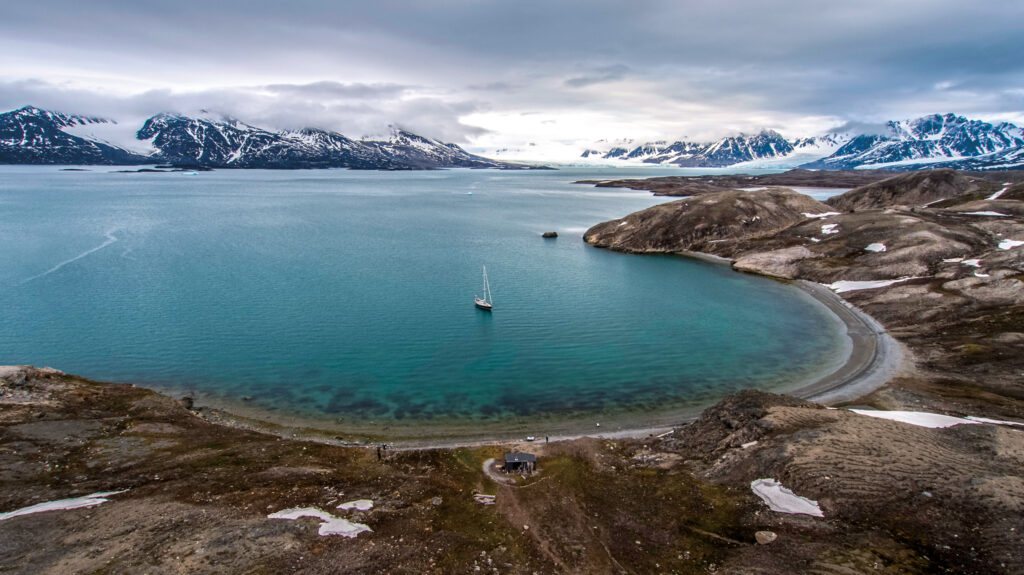 Many practicing and aspiring cruisers are familiar with the crew of the Delos; they have gained internet stardom via their Youtube video chronicles of the cruising lifestyle. This past summer, the Delos team—Brian, Karin, Brady, Alex and Kiril—joined my wife, Mia, photographer James Austrums and me aboard our Swan 48, Isbjörn, in Norway’s Svalbard archipelago for three weeks of adventure, filming and merriment in the High Arctic. Mia and I had long had a dream to sail to this lonely, rugged Norwegian archipelago only 600 miles from the North Pole, where the polar bears outnumber the humans, the water is sometimes choked with ice, and the mountains fall from 3,000ft straight into the sea. It would be the biggest challenge of our careers to date, and we wanted to properly document it.