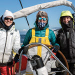 From left: Mia, Alex and Karin enjoy a crisp but sunny afternoon underway