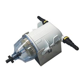 With Racor’s SNAPP technology, the whole filter assembly (filter and bowl with water and debris) is self-contained and can easily be removed from the SNAPP bracket. Changing the filter is so easy it can be done with one hand: just pinch the filter near the mounting bracket and pull. The SNAPP in-line system is easy to retrofit as well. The filter assembly bracket attaches to the bulkhead with screws, and simple fittings connect the fuel line on either side of the new filter system. The Racor SNAPP fuel filter system is designed for small gasoline and diesel motors (up to 40GPH) and filters are so cost effective that keeping a few on hand won’t break the bank.