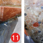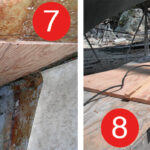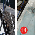 On many boats, decks are cored with end-grain balsa or plywood with a fiberglass laminate on each side. It’s not unusual for moisture to find its way into this wooden core. Stanchion bases and chainplates often leak as a boat ages, and often holes are drilled in the deck for new hardware, anchoring systems or dinghy tie downs, and not properly sealed by coating the exposed core with epoxy resin. Over time, moisture intrusion leads to a rotten core, which in turn makes decks “spongy” and compromises the integrity of that portion of the boat.