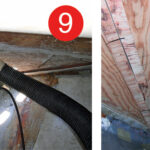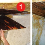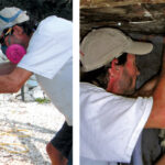 Dave alway wears a respirator when sanding, and when we are dealing with acetone or epoxy, we wear respirators with volatile organic compound filters, gloves (which on messy jobs such as this one are taped around his wrists), long-sleeved shirts and hats. He should have been wearing a Tyvek suit as well. Though he usually works very cleanly, the small space made keeping epoxy off his skin very difficult. It’s important to keep it off your skin and to not breathe any of its fumes.