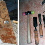 With the laminate and the wood removed, Dave next attacked the remaining core between the lip of interior fiberglass and the deck. To remove the rot he broke it into smaller pieces with a chisel and then used his deck caulking reeving tools (which resemble bent screwdrivers) to clean out these scraps of rotten wood. Once the area to be repaired was completely clear, it was time to build the replacement core.