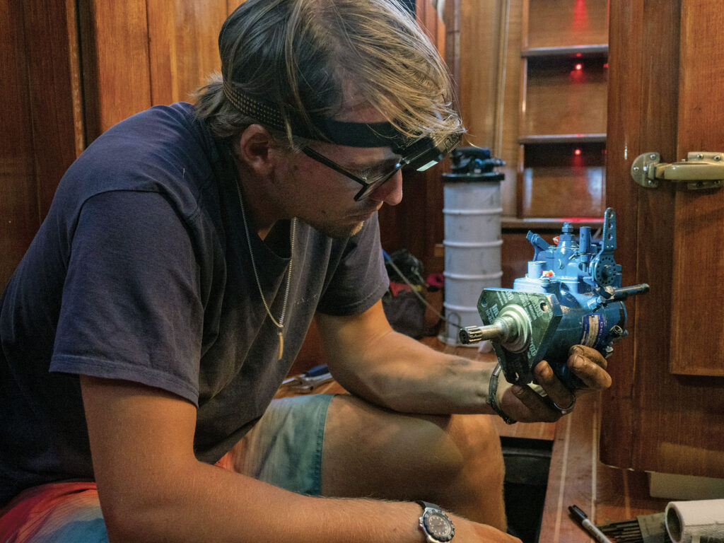 Surely our certified, rebuilt high-pressure fuel pump couldn’t be the cause of another near disaster, right? As soon as we limped into Banderas Bay from Isla Isabel and set our hook, Chris dug right into the project to confirm that, once again, the fuel pump was to blame.