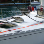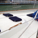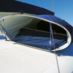 However, it looks better and doesn’t cost much to have Sunbrella fabric covers made to slip over the outside of your hatches. These are attached with snaps or tensioned under the hatch lip with a drawstring. Another approach is the nifty made-to-measure expanded PVC hatch covers made by Outland Hatch Covers, attached with twistlock fasteners. Whichever way you go, you’ll find hatch covers have the added bonuses of delaying the inevitable crazing of the plexiglass in hatches and keeping your sleeping cabin nice and dark.