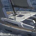 The narrow headsail aboard this fractionally rigged Beneteau Oceanis 51.1 sheets well inboard