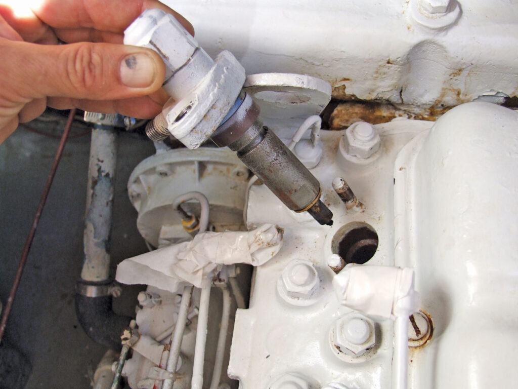 Servicing fuel injectors on a diesel engine is something most any boat owner can accomplish with a few basic tools. The job is especially easy because it really just involves getting the injectors out and sending them to a diesel shop. Actually testing and rebuilding injectors requires specialized equipment and knowledge that most of us do not possess.