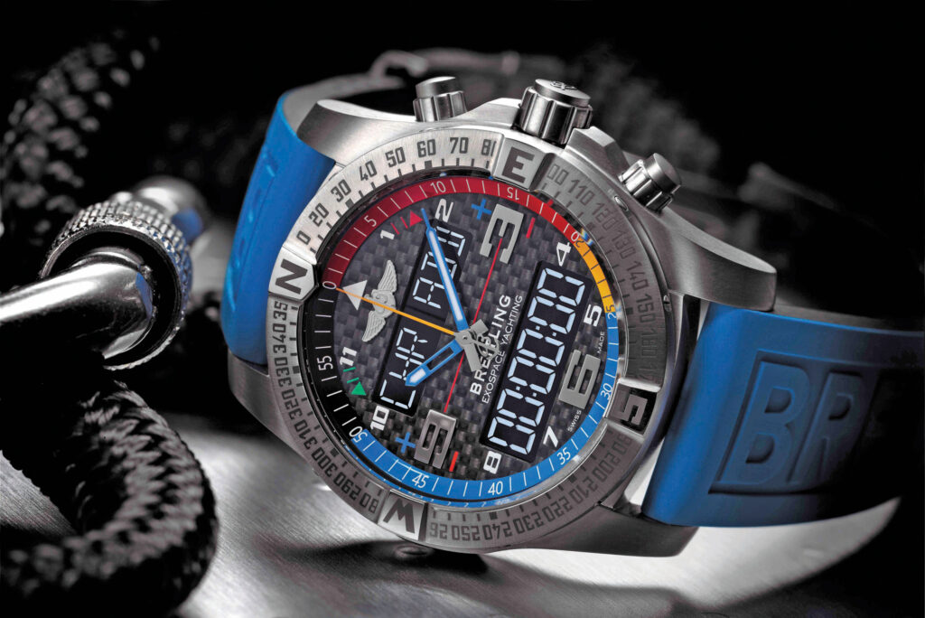 If you’re in the market for a high-end sailing timepiece with a few tricks up its electronic sleeve, the Breitling Exospace B55 Yachting belongs on your wrist. Not only does it tell the time with uncanny precision, it is equipped with a race timer system that has a host of functions and can be connected to a smartphone or tablet via Bluetooth. This allows you to check the timer, control the functions from your phone and store or share measurements. Clever, no? The rechargeable battery has a 10-year lifespan, and the watch is water-resistant to 100 meters. $7,170. Breitling, breitling.com