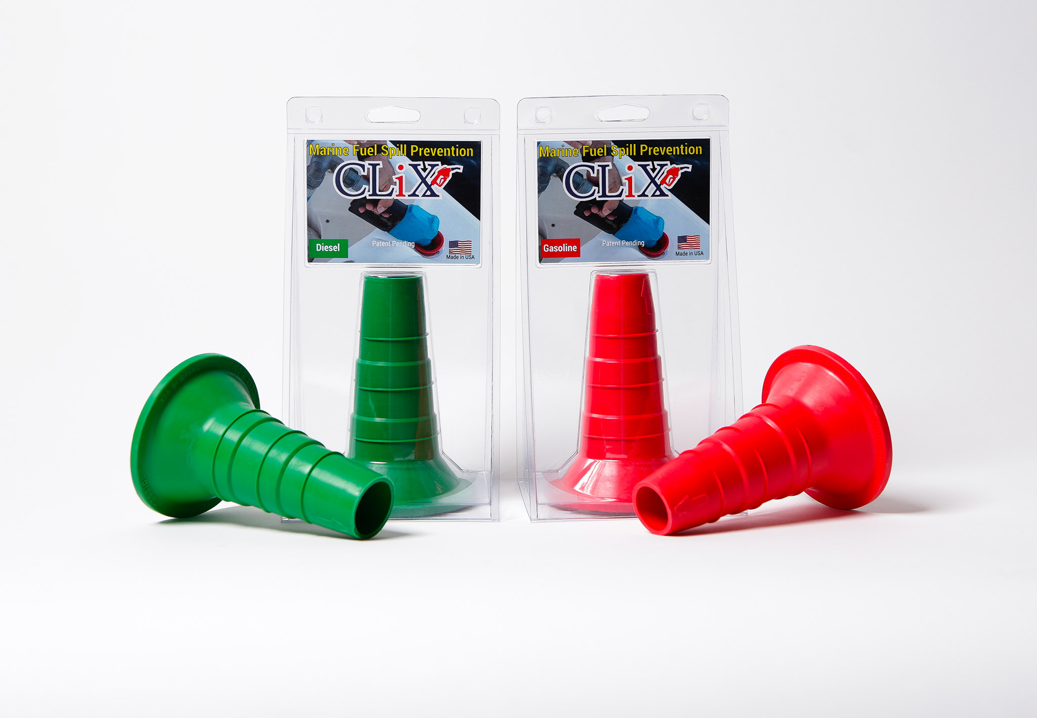 That’s why CLix has designed a patent-pending fuel funnel that also stops the nozzle when full, cutting down on spills also cuts down on clean ups, fire risk, waste, and pollution.