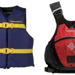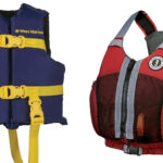 1. West Marine’s Runabout youth life jacket (left); 2. Stohlquist Edge life jacket (right)