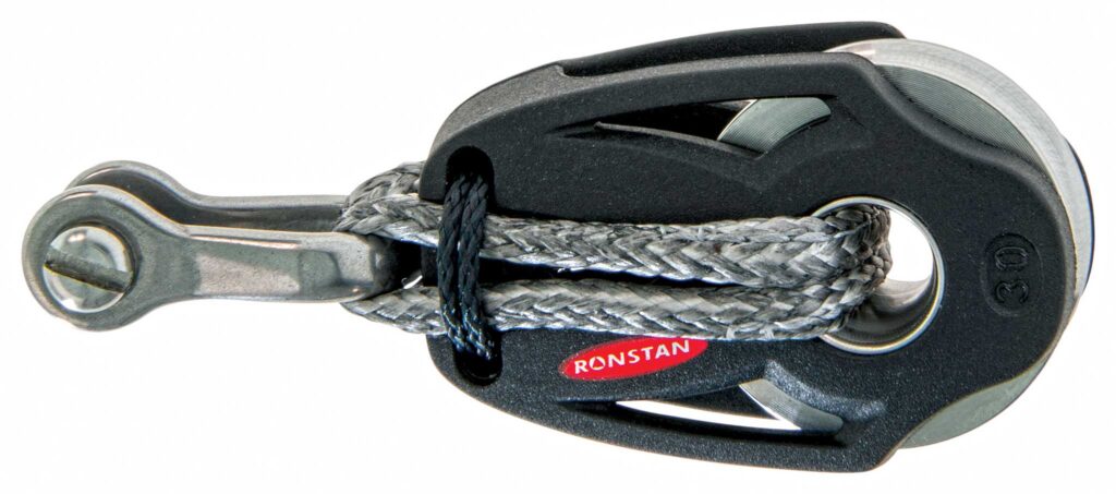 Today’s high-performance dinghies and other small boats—full-foiling designs, in particular—subject their control systems to higher loads than ever due to their high speeds and ever-higher apparent winds. To help tame these forces, Ronstan has come out with a line of 30mm “HHL Lashing Blocks,” expressly configured for use aboard smaller multihulls and cutting-edge skiffs. Typical applications include high-load vang systems on Moths and Lasers, and various different cunningham, outhaul and backstay purchase arrangements. Each block incorporates a stainless steel sheave, ball race and bearings, can accommodate a maximum line size of 8mm and is rated to a 1,210lb maximum working load and 3,630lb breaking strength. Not bad for a piece of equipment tipping the scales at less than 2oz.! A smaller 20mm block line is also being released this year.