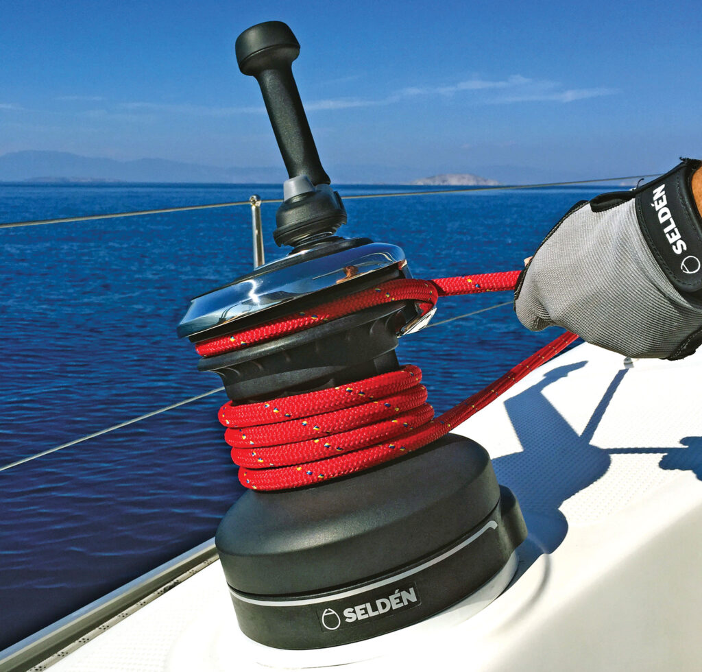 Seldén’s S-series winch simplifies tacking and makes handling a loaded sheet easier and safer by allowing you to tail the line to your heart’s content with it already running through the self-tailing mechanism and the winch handle in its socket—no more having to pop in the handle or thread the loaded line while you’re hanging on for dear life with the boat on its ear. The transition from tailing to grinding mode also becomes a one-person operation, meaning you can keep that much more weight on the high side. A series of concave surfaces on the anodized aluminum drum ensures the line runs up through the carefully sculpted self-tailer with a minimum of fuss, while the socket for the handle is offset to help keep the handle out of the way.