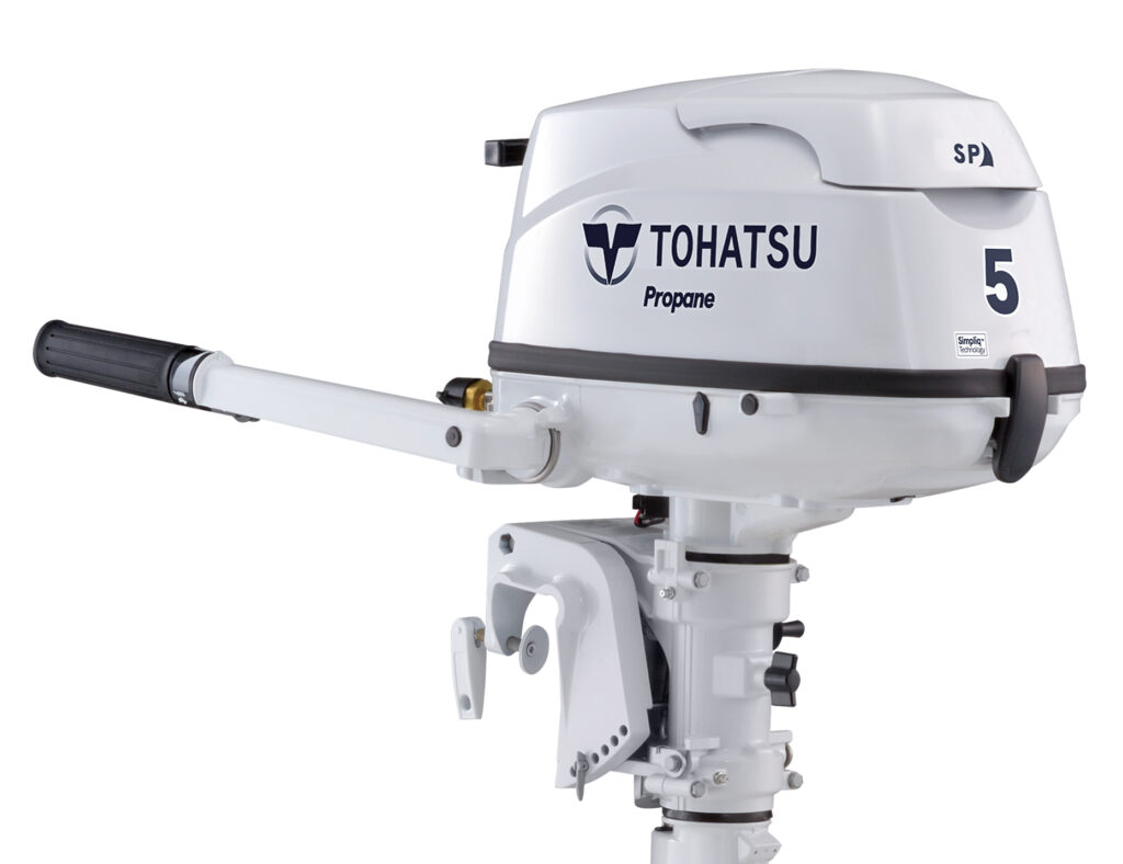 Tired of ethanol-induced fuel issues? Say goodbye to gasoline. Japanese outboard maker Tohatsu has introduced an LPG-powered 5hp kicker that hooks up to a propane tank for hours of stress-free running. Available in short-, long- or ultra-long-shaft versions, the motor boasts low emissions, start-in-gear protection, a 5-year limited warranty, a 12-volt, 60W charging system and a fuel safety shutoff valve to eliminate propane leaks.