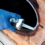 Of course, strength in the sealant was not a big concern with the deck prisms: that’s provided mostly by the screws holding the frame. We, therefore, re-bedded the prisms with a combination of marine silicone and polyurethane sealant from Boat Life called LifeSeal. As a first step, we repaired the bits of the deck that had been damaged by the 5200 with West System epoxy and low-density filler. While waiting for it to cure, and before we could sand it smooth, we also scraped, scrubbed and sanded off all the old sealant from the prisms and frames. As a final step, we taped the prism and deck with painter’s tape, cleaned the surfaces with solvent and then used plenty of sealant to make sure both the joint and the screws would be watertight.