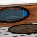 With the deck’s prism taken care of, it was time to move on to the portlights, which had been bedded with an unknown but old and very sticky sealant. I doubt it was 5200 because they were so easy to remove. Once we’d taken out the screws, it just took a knife blade inserted in between the wood and the bronze to remove the bronze frames. No wood came away from the cabin. By contrast, removing the sealant from the bronze frames, the Lexan ports and the mahogany cabin was one of the toughest parts of the entire project. It took hours of elbow grease since neither turpentine nor acetone (which we only tried on the bronze) would defeat it.