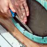 When Seth and I bought Celeste, we were astonished—and grateful—to discover how dry she was, and we continued to be astonished as she remained watertight over the course of five years exploring in the cool and rainy climate of Alaska. It was not until we sailed to the hot, arid climate of Mexico’s Sea of Cortez that problems started. Thanks to the fact Celeste is built of cold-molded wood, she did not develop any leaks in her hull or decking. However, the heat did begin to shrink the material around her various fittings: including her bronze portlights, the frame holding the center hatch, the deck prisms, the foot switch for the anchor windlass, the stanchion bases and the bow pulpit.
