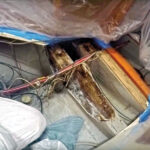 “Each stringer insert was built with four 3/4in sections of 25lb Coosa high-density foam board. The sections were laminated with 738 Episize biaxal fabric and West Systems 105 epoxy resin to create 4in thick inserts for both the aft and fore stringers. Once the lamination was cured, plywood templates were used to cut out the final insert shape. The stringer inserts were bonded into the boat with epoxy and 406 Colloidal Silica. After final cleanup and fillets, each stringer was laid up with four layers of biaxal fabric, with tabbing between each layer for a total of 160 pieces of fabric glassed in.”