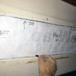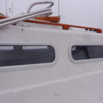 Removing the old ports was the worst part of the project, since all the fasteners were either stripped or fully corroded into the old aluminum frames. Out of a total of 64 fasteners, I could only remove about 10 with just a screwdiver. For the rest, I had to chisel off the old screw head and then use a Dremel to cut a new slot to allow removal. It was a messy, knuckle-busting job, done over a couple of weekends in the cold of a late New England fall, but the promise of a new view of the scenic Maine waters spurred me on. The resulting openings were a little jagged (hand-cutting of any openings was the norm for boatbuilding in the late ‘60s….no CNC machines with clean cuts back then), so I used some West System Six-10 to smooth out the edges in order to get the openings clean enough to make a good set of tracings. For the actual tracings I used some leftover Tyvek from a home project as it provided some rigidity when taped onto the openings. I then mailed my tube of tracings to Bomon, which used them to create a set of CAD drawings that were sent to me for checking against the openings on the boat. As it was, the original openings must have been cut on a Friday or a Monday, perhaps by two different workers, as there were two distinct sizes, one of each to port and starboard. It wasn’t a huge difference, but enough that Bomon cautioned me to place each drawing in the correct opening for accuracy, and when they arrived, mark each port for the correct opening.
