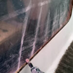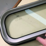 After researching options, I decided to have Bomon (bomon.com) out of Canada make a set of replacement ports. They are an experienced manufacturer, making ports and doors for many well-known builders. The ports would be constructed out of extruded aluminum and tempered glass, and I was guaranteed they would not leak. I was instructed to remove the existing ports, make a tracing of the openings, and we’d have new ports in a few weeks. (Ordering in their slower season helped expedite the process.)