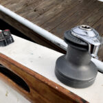 A now irrelevant cleat just off of one of Shirley Rose’s brand-new self-tailing winches!