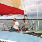 Dave (top left) and the author sail-trial Spirit on Long Island Sound