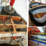 At first I’d planned to replace them with plywood and then carry out a replacement in composite in Australia. However, after removing some large sections it was evident that a far more thorough job needed to be done, and after getting some solid advice and careful consideration I decided to employ composite expert Peter Kallman to help out. (I know Peter would hate to be called an expert but he truly is; we couldn’t have asked for someone better.)