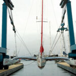 With Peter in charge, we used the old decks as molds and quickly laid up the new ones. We also ripped out all the interior wiring and anything else that wasn’t needed and was therefore just unnecessary weight. Finally, we took off all the redundant deck gear, replaced it with all-new Lewmar stuff, thereby simplifying the layout, replaced the two aft shrouds and had all the rigging checked. Most of it was in good order, and it was only the dynamic-loading rear shrouds that were worn, with broken strands on each and lots of surface rust.