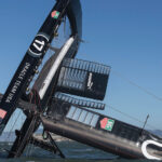The first time America’s Cup competition saw two hulls (not to mention a then wildly radical wing sail) was when Dennis Connor skippered the 60ft catamaran Stars & Stripes against Michael Fay’s winged monohull New Zealand in 1988 (See Foiling and Flying). Then, just to make sure the sense of whiplash was complete, America’s Cup organizers promptly threw the entire multihull concept straight into the garbage and went back to monohull IACC class racing. So much for continuity!