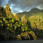 After 18 days at sea, I glimpsed the first sight of land. The ragged Polynesian peaks of Ua Huka lay ahead in the distance, interrupting the unbroken horizon that I had become accustomed to. Jim joined me at the helm as we turned into Taiohoe Bay, Nuku Hiva, a few hours later, and with the biggest smiles on our faces, we carefully put away our sails.
