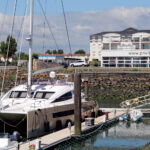 As we drive over the bridge across the Garonne river, a line of white hulls moored to the far riverbank signals the location of the 25-acre CNB/Lagoon complex. Just across the river is the new wine museum, a gigantic, rounded silver structure designed to evoke the swirl of wine in a glass (but which reminds me of a runaway blob of mercury), whose siren call will awaken the oenophile in any sailor—and there are plenty of both in France.