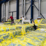 The first thing I notice in the mold shop is the smell—more to the point, the lack of it. The styrene stench that has historically permeated fiberglass-boat factories is a thing of the past here. Strict European environmental laws have seen to that; it is so expensive to control styrene emissions that it is easier for builders to go to closed-mold construction. Lagoon, thanks to its background in building high-tech racing multihulls, was one of the first production builders to adopt a resin-infusion process, in which fiberglass rovings and core materials are laid up dry in the mold, which is then covered with plastic sheeting before a powerful pump creates a vacuum that sucks the resin into the layup. Cored hulls can thus be made lighter and stronger, and quality control—those words come up so often that it must be tattooed into the Lagoon subconscious—is much easier when you know you’re not going to find voids in the laminate. Plus, it makes for a much healthier working environment.
