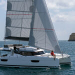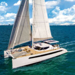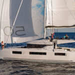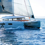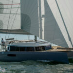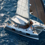“On deck, everything is made to be simple and reliable, easily maneuverable by a small crew,” said naval architect and longtime Nautitech collaborator Marc Lombard. “Similarly, the hull balance is a judicious compromise between a moderate waterline breadth to limit the wet surface and a large volume were useful in terms of amenities. Construction must be sturdy, reliable and relatively rigid. This is achieved thanks to high-quality composite material and the care given to the structural links.”