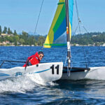 “Sailing with crew, as I did in the R2AK, actually was a step up, because most of the time I singlehand Alula,” Spike explains over a vegetarian lunch, before heading to Seattle’s Sandpoint Sailing Center to take a Hobie Wave for a spin on Lake Washington.