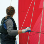 Eddie and Megan trim the spinnaker on calmer days.