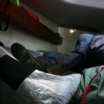 She looked at me in confusion, and that’s when I peered over the lee cloth and saw water over the sole, sloshing around her ankles.
