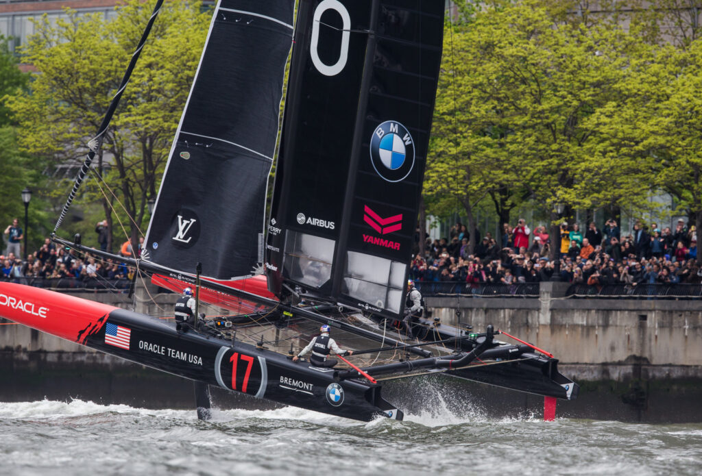 Following the New York event, which Emirates Team New Zealand won after edging out Oracle Team USA by a mere two points following a dramatic come-from-behind win in the final race, Emirates is also in the overall lead with Oracle Team USA in second. Land Rover BAR is in third, following by the Japanese, Sweden’s Artemis Racing and the French.
