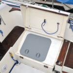 To keep water intrusion to a minimum, cockpit locker openings were glassed over and watertight hatches were installed