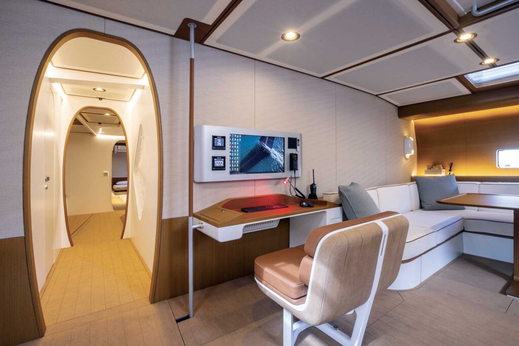 With so many new systems and innovative ideas at play onboard, it’s no wonder there’s a bit of a shake down period to get it all sorted. But the team reports the new systems have been remarkably well behaved. “The canard, the raking keel, it’s all worked well, and the battery and electrical side of the boat have been a roaring success,” Gallichan says. The days spent on the water without the generator running are one of the best benefits. “There’s been a lot of interest. I think it’s early for other people to be adopting the technology, but a lot of owners have come to look at the boat and been impressed by it.”