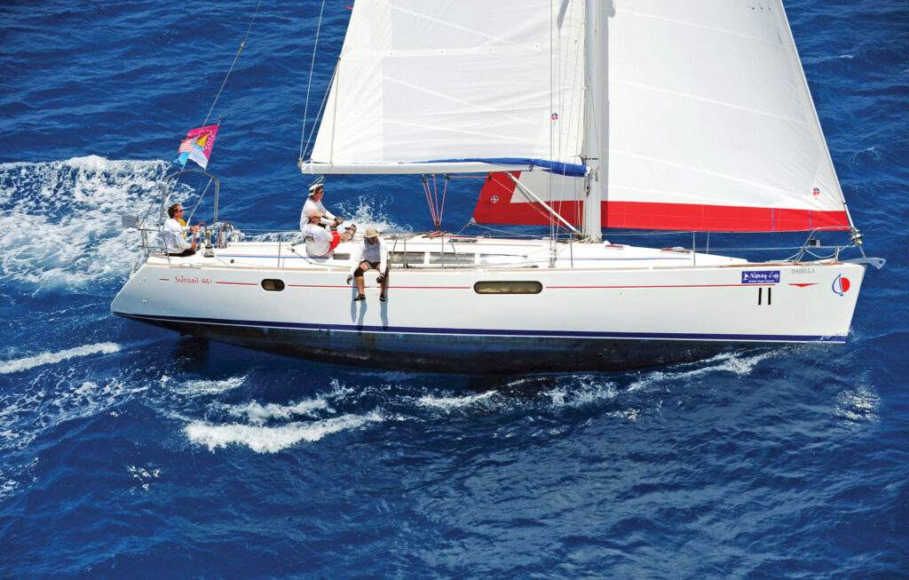 The crux of bareboat racing is to make your tubby cruiser, complete with (usually) tired sails, go faster than your rivals’ equally tubby boats. Boats are split into classes according to size, and races are run under a handicap system that, like all such systems, always seems to penalize whatever boat you’re on. Knowledgeable bareboat racers tend to book boats that are known to be fast, or ones numerous enough to be given a class of their own.