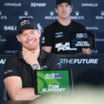 Team Australia’s driver, Tom Slingsby, at the pre-race press conference.
