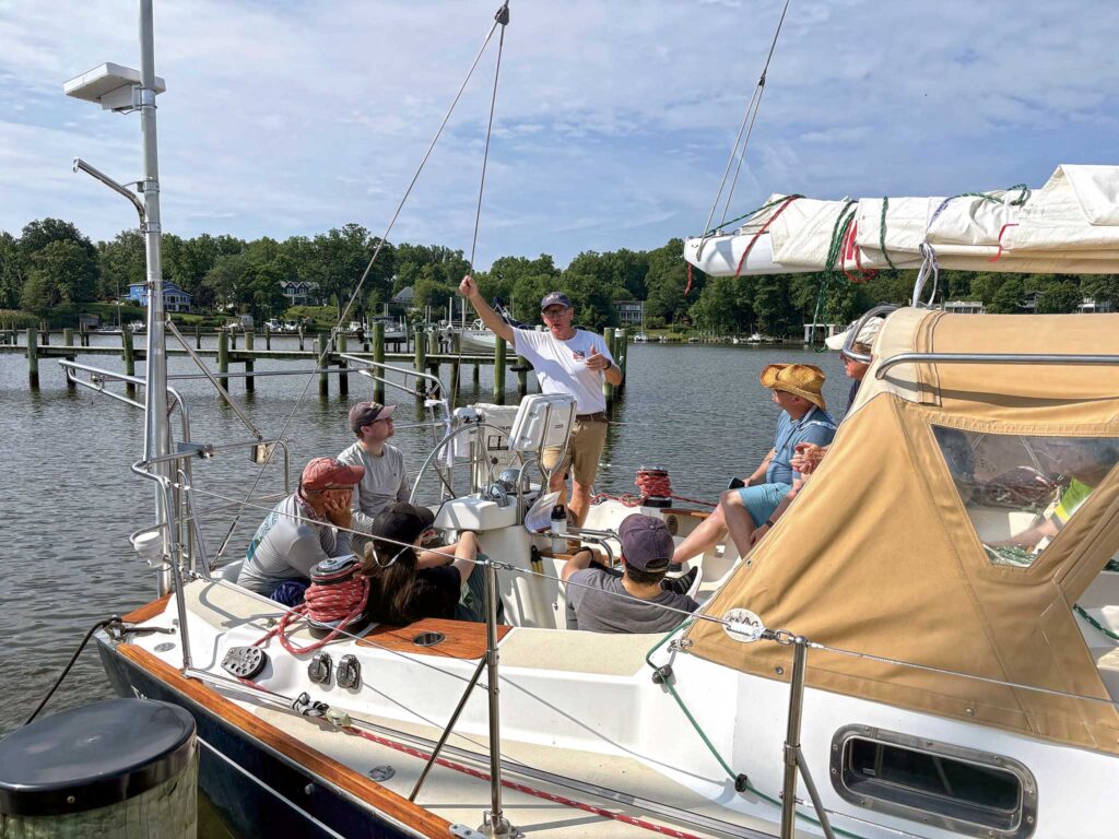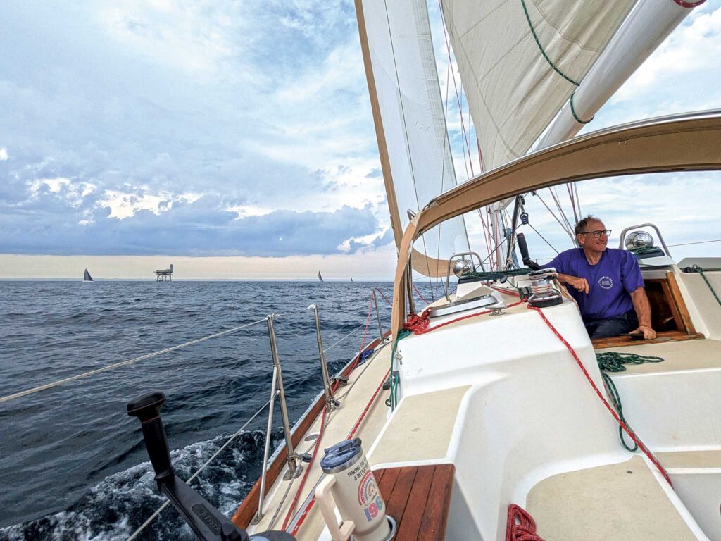 The boat turned out to be a Tartan 4100 named Tally Ho, lovingly maintained but—as Tartan’s tend to be—not designed with racing in mind. There was a bit of initial awkwardness as Rich tried to set expectations for us perhaps not being the most competitive boat in the fleet. Truth be told, that couldn’t have suited Eddie and I better. Being as it was both of our first race back after the wreck, we were more than happy for a gentler pace. Plus, we’d gotten absolutely walloped by the Annapolis-Newport in 2023 (see the October 2023 issue), so a boat that was both comfortable and solid as a tank was exactly right for us.