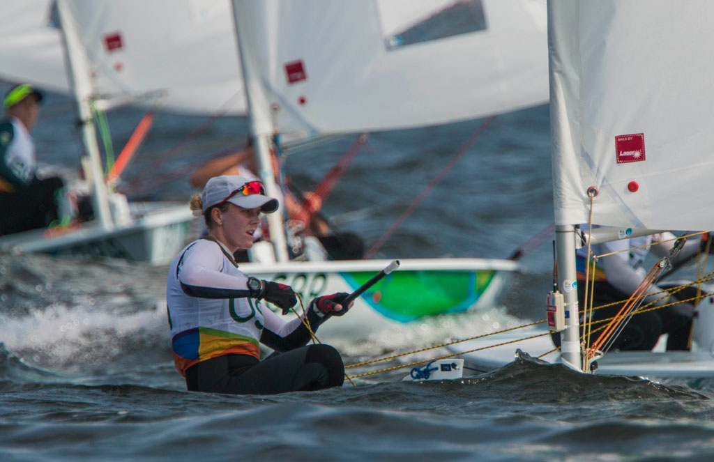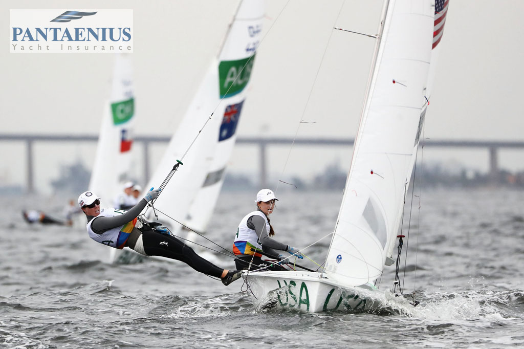 Although it was a rest day for Paige Railey in the Laser Radial class, it appears U.S. 470 sailors Annie Haeger and Briana Provancha are