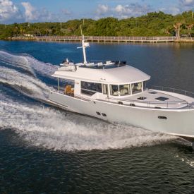 The Outback 50 combines the cruising sensibilities of a trawler with a 20-knot Michael Peters hull.