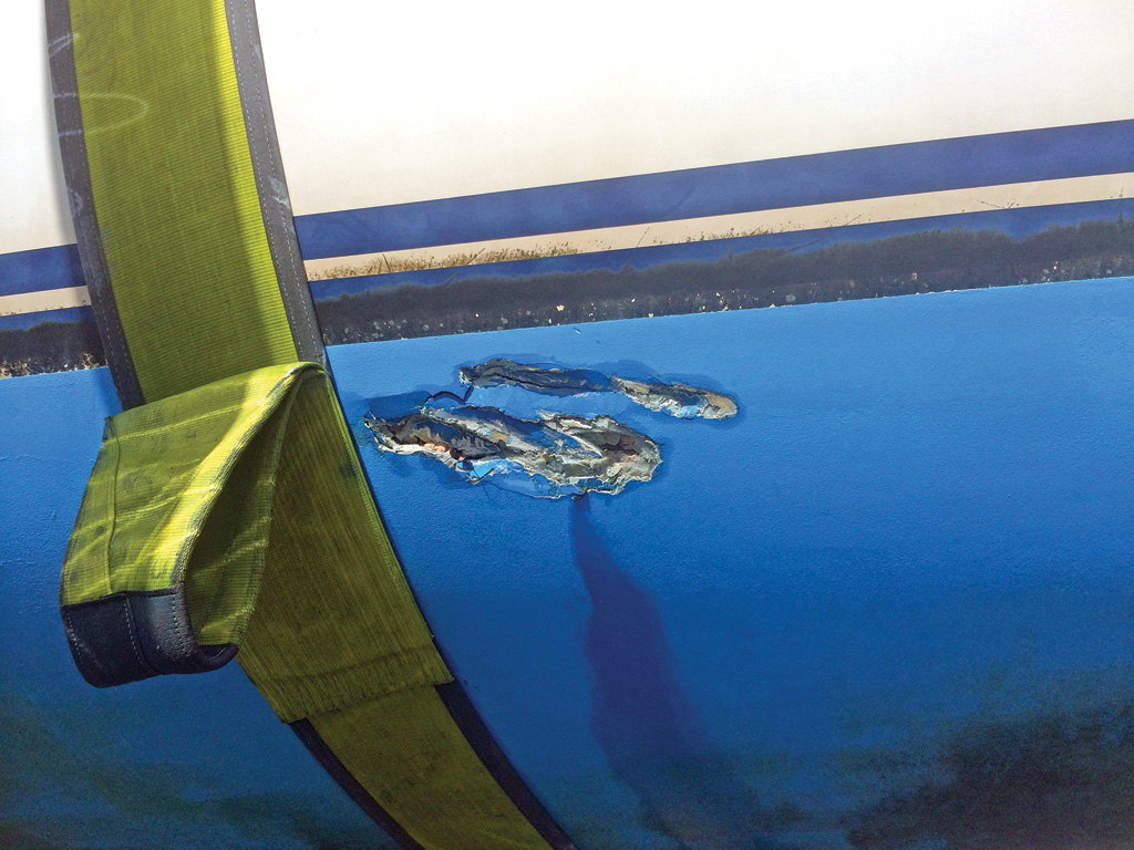 DEEP GOUGES Q: While on a night passage aboard my boat, I struck an unidentified floating object. It did not penetrate the inner laminate, but