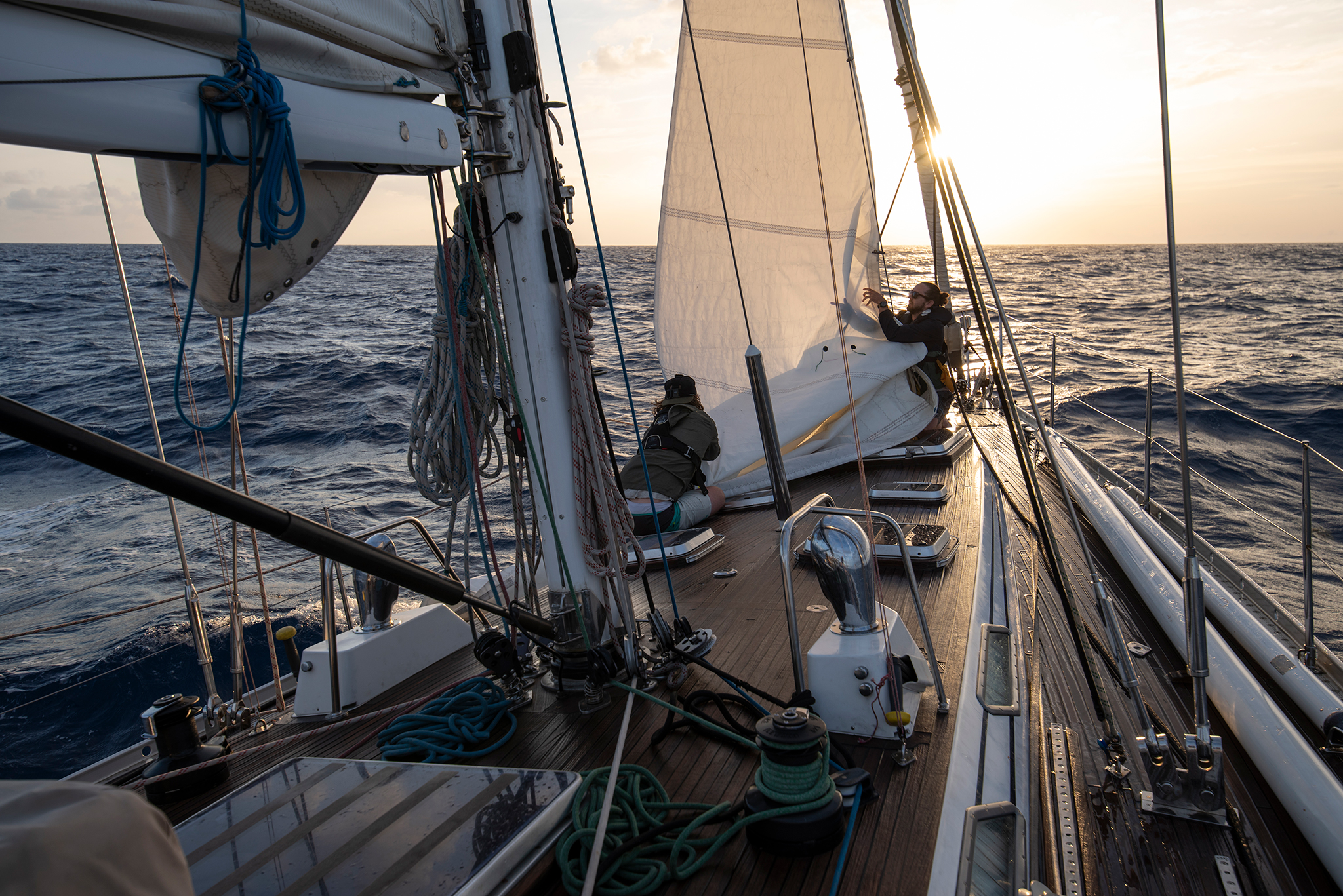 We’re broad reaching with two reefs already in the main and the breeze rapidly building. We’ve already seen gusts in the upper 20s and a