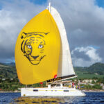 Originally from the UK, but having lived in South Africa and Belgium before moving to the United States, we finally settled in Oriental, North Carolina, where there are more boats than residents! We took delivery of Misto in La Rochelle, France, and sailed as far as the Azores with the same delivery captain who completed the trip to Annapolis, Maryland. Misto is named after Mr. Mistoffeles, the magical cat from the musical Cats. We chose the Nautitech 442 for many reasons, first among them being performance, which, even without daggerboards, is very good. She also has a high bridgedeck clearance that minimizes wave slap, a low-profile coachroof and hulls with no raised helm station or flybridge, all in the interest of minimizing windage. Having the boom close to the coachroof (as there is no raised helm station) also makes it easier to work on the mainsail, while the twin helm stations provide redundancy and make docking a snap. Since we bought her, we have made a number of additions and modifications, including installing an SSB radio, a Watt & Sea hydrogenerator, and a Hydrovane self-steering system. We also changed to a single-line reefing system for all three reefs and added a Parasailor.
